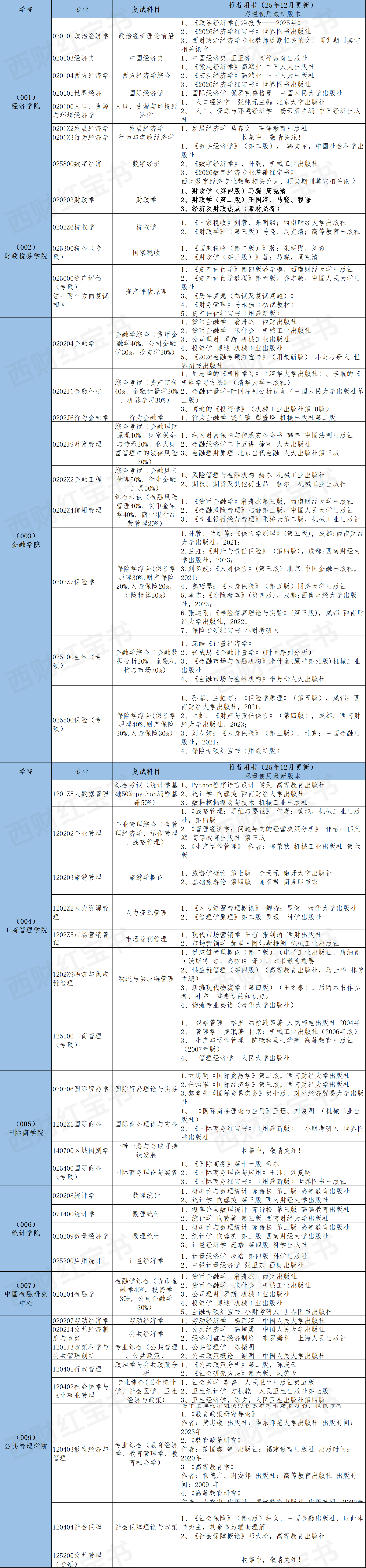 统招人数 | 今天我们来分析一下2025西财考研各专业统考生名额到底有多少?