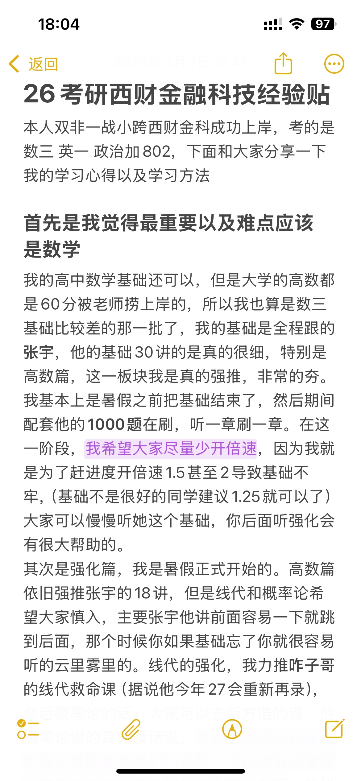 我把踩过的坑、高效的方法全给你们扒出来了,跨考/基础差的同学们直接抄作业!#西财[话题]##西南财经大学[话题]##西财红宝书[话题]# #经济学802[话题]# #金融科技[话题]##27考研[话题]# #考研经验分享[话题]#