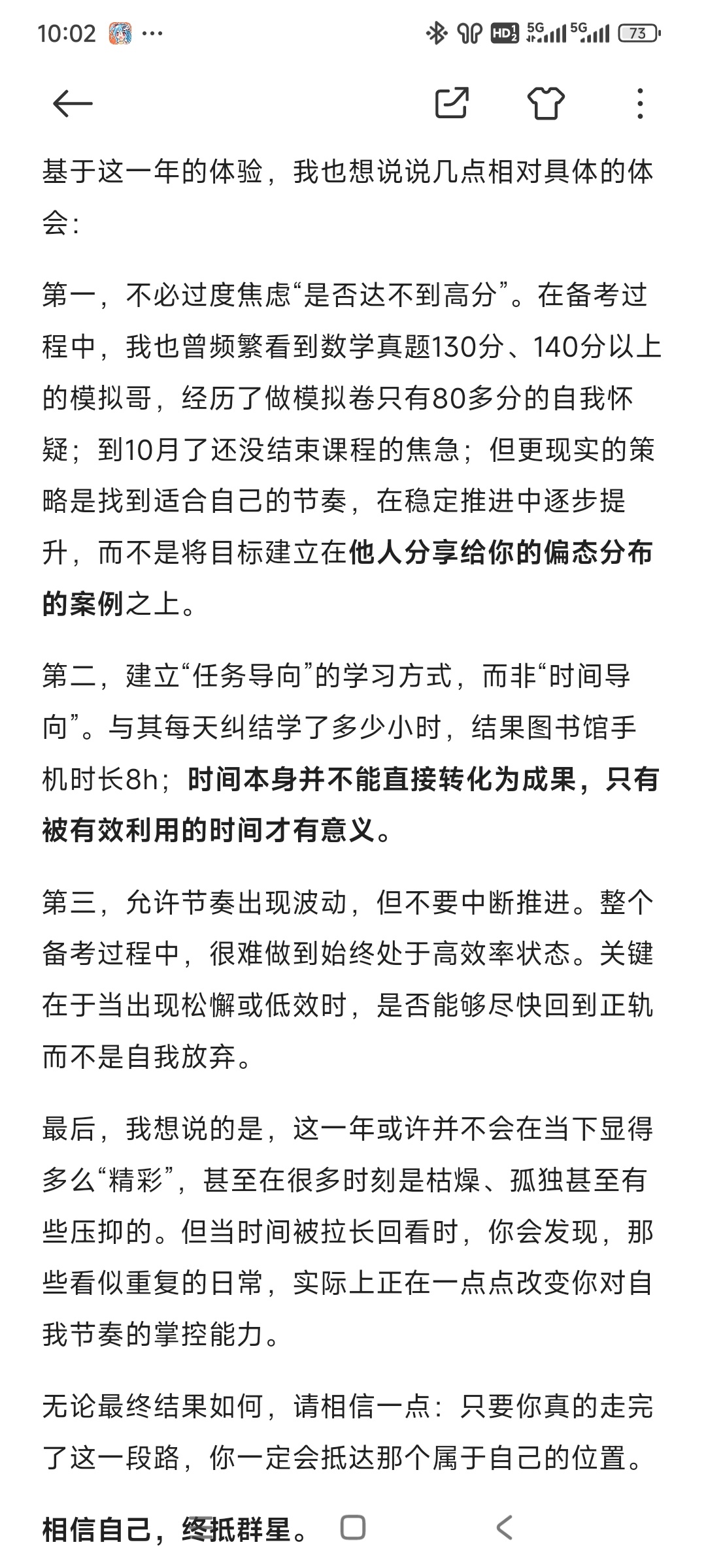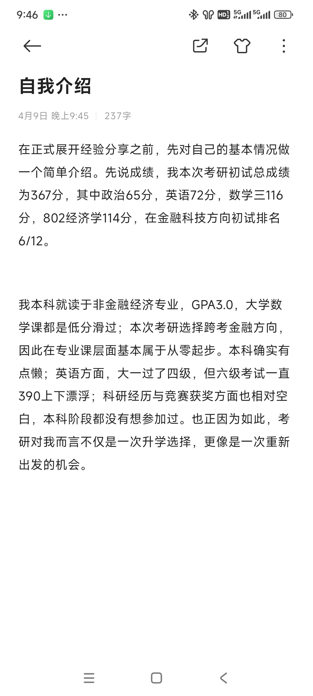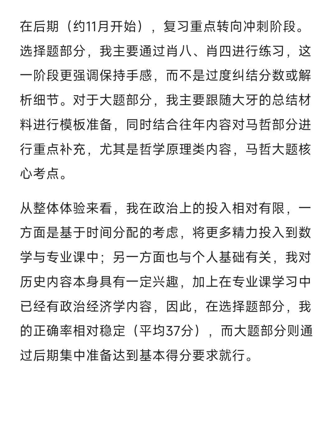 除此以外在我备考过程中接触到的大量经验贴中,较多集中于高分考生的分享,这类经验固然具有参考价值,但也不可避免地会带来一定的心理压力,使人产生是否必须达到这样的水平才能成功的焦虑情绪。相比之下,我更希望提供一名基础并不突出、跨考金融的普通考生,在并非高分的情况下,如何通过相对稳定的节奏和合理的规划,完成整个备考过程并最终取得一个相对理想的结果。